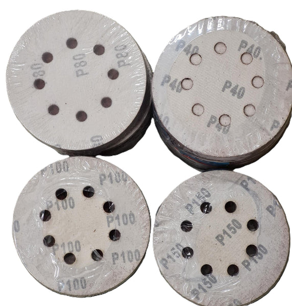 100 St. Set 125 mm Klett Schleifpapier Schleifscheiben für Exzenterschleifer, Schleifmaschine, Winkelschleifer. Mit 8 Löcher. Körnungsauswahl
